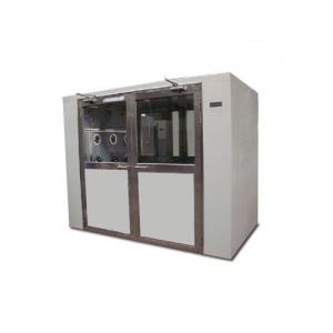 風/貨淋室是人/貨進出潔凈室所必需的通道,并同時起到氣閘室密閉潔凈室的作用。為了減少由于人/貨進出所帶來的大量塵埃粒子,經(jīng)高效過濾器過濾后的潔凈氣流由箱體兩側可旋轉噴嘴噴射至人/貨表面,有效而迅速清除塵埃粒子,清除后的塵埃粒子再由初、高效過濾器過濾后重新循環(huán)到風淋區(qū)域內(nèi)。為了達到吹淋的最佳效果,風/貨淋室設計的噴嘴出風口風速能達到20m/s以上,吹到人身上的風速最低1 8m/s,出廠的初始風淋時間設置為15秒。